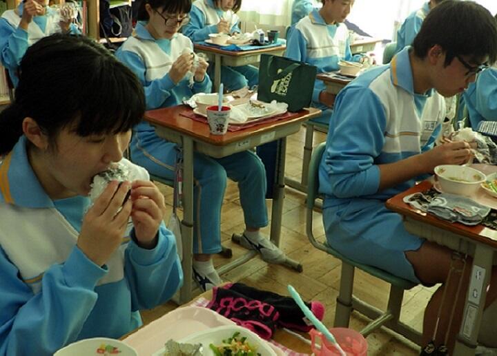 本日,河内地域学校園(岡本小,岡本西小,河内中)は“おにぎりの日“でした。本校では,事前に『「おにぎりの日」がんばりカード』を生徒各自が作成し,当日までの準備をしてきました。生徒は,各自作ってきたおにぎりを,給食のおかず,牛乳と一緒においしくいただいていました。
