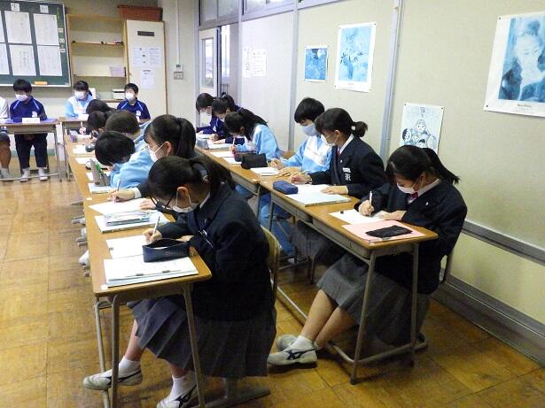 私立高校入学試験まであと2週間になりました。今日の帰りの会では,私立高校受験のための事前指導が校内放送にて行われました。3年生の多くの生徒が1月4日(火)からの入学試験に臨みます。進路指導主事より今後の過ごし方や心構え等について説明がありました。感染症には十分に注意して,当日までを計画的に過ごし,実力を発揮してきてほしいと思います。