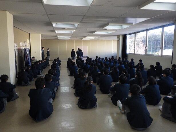 今日は,さくら清修高校の先生が来校し,学校の概要や入学試験等の説明をしていただきました。さくら清修高校は総合学科の高校で,2年生から100を超える科目から,自分が学びたい勉強を選択できる学校です。その科目選択については,1年生「産業社会と人間」の授業でしっかりと考えます。学校行事や部活動も充実しているとのお話でした。
