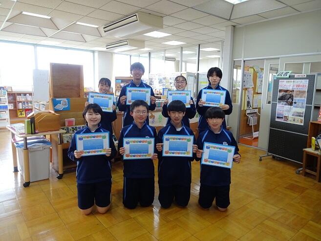 今日の昼休み図書室において、河内中学校読書コンシェルジュの任命式を行いました。各クラスで読書活動を推進する役割を担ってくれる皆さんです。1年間よろしくお願いします。