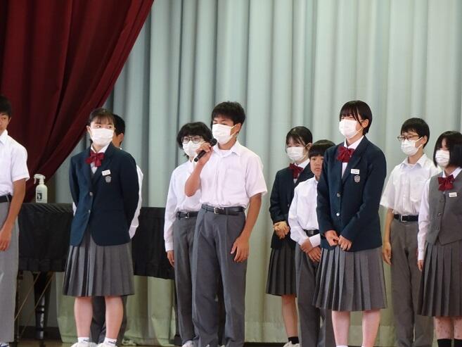 今朝は体育館において、生活委員会主催の『いじめゼロ集会』がありました。ここでは、クラスの「いじめゼロ宣言」を発表し、今日からの学校生活が、いじめのない毎日になるよう誓いました。集会後には、各自「いじめゼロ宣言」を考え、全員で力を合わせていじめゼロを実践していきます。