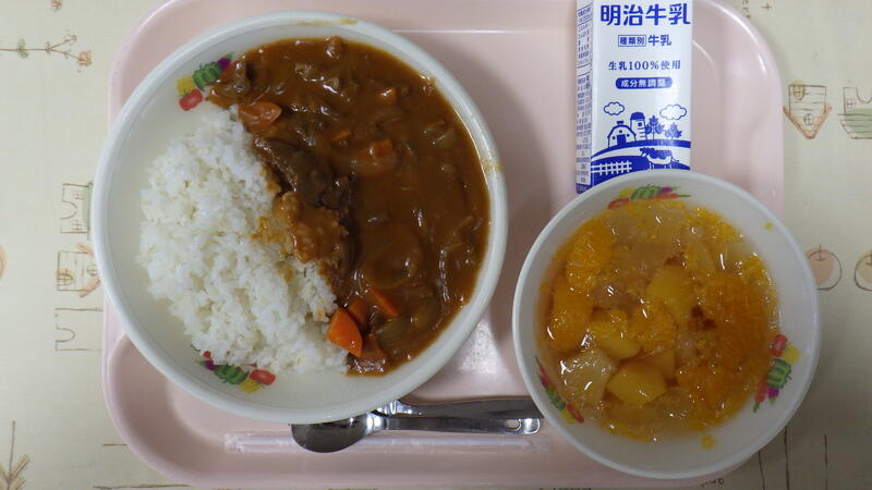 ハヤシライス 牛乳 フルーツポンチ
