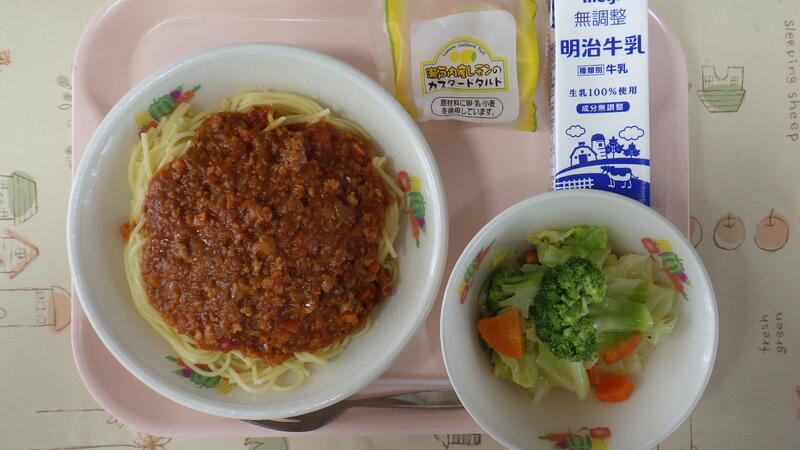 スパゲティミートソース 牛乳 ゆで野菜(イタリアンドレッシング) レモンカスタードタルト