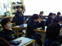 インフルエンザ等流行のため会場を体育館から各教室に変更し、テレビ放送で行いました。