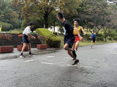 〇中継所が坂道のため,スピードを上げての襷渡しになるため,練習をしました。