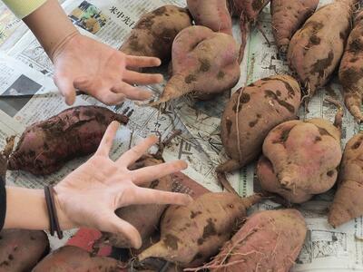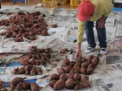 今年のイモの出来は、少々発育不足で小さめのものが多かったです。晴れの日は多かったけど、雨が少なかったからでしょうか・・・。