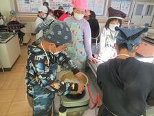 4年生が学習している隣の理科室では,5年生が実験に取り組んでいました。「もののとけ方」の学習で,水の温度を変えて食塩を溶かしています。グループで協力して器具を扱い,集中して実験に取り組んでいる様子がうかがえます。