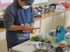 きょうのメニューは,里芋コロッケ,もやしとにらの胡麻和え,かんぴょうの卵とじ汁,ゆずゼリー,麦入りご飯,牛乳です。きょうは「宮っ子ランチ 冬」~黄ぶなにちなんで健康になろう献立~です。