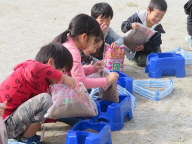 1,2年生が,生活科の学習で「むかしあそび」をします。お手玉,けん玉,竹馬,はねつき・・・たくさんの保護者や地域の皆様にご協力をいただいたおかげで,子どもたちは多くの種類の遊びに触れることができます。ヨーヨーのコーナーでは「難しいけど楽しい!」と夢中になっている子がいます。「見て!見て!」とあやとりや折り紙を見せてくれる子もいます。友達と仲よく遊ぶ楽しさや地域の方に教わりながら遊ぶ楽しさを十分に味わっているようでした。保護者の皆様,地域の皆様,ご協力ありがとうございました。