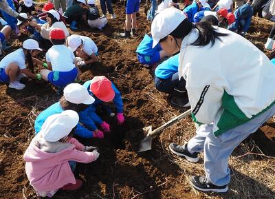 昔の暮らしを体験する学習の一環です。