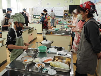 本校の年末恒例行事となった、船頭鍋をつくる親子料理教室が、26日(金)に行われました。