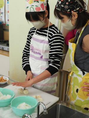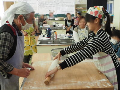 子供たちは野菜切りやうどん打ち,麺切りなどを体験しました。