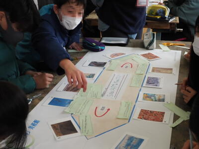 ③自分たちでテーマを決め、テーマに合った作品をカードから選び、ストーリーを考え展示会をつくる。