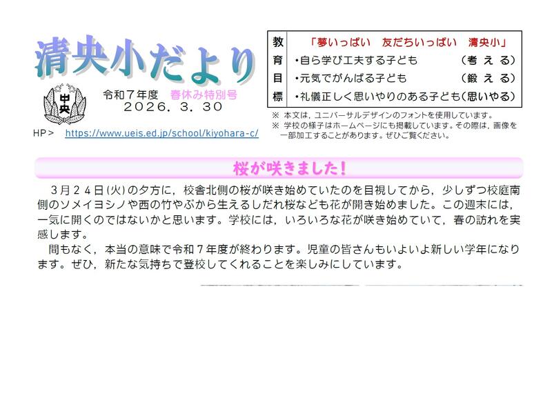 メニューの「各種たより・お知らせ等」からご覧ください。