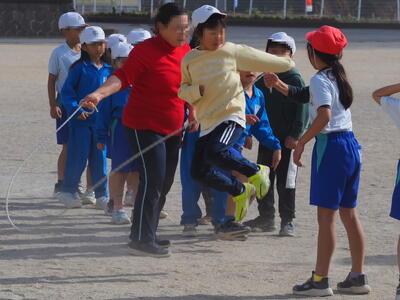 ちなみに中学年以上は、クラスを二つに分けて跳び、その合計で競います。