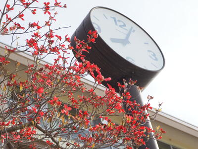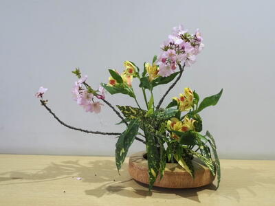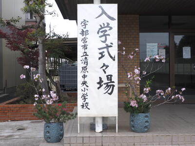 入学式の立て看板にも、お花が生けてあり、式後、多くの皆様が写真を撮っていました。