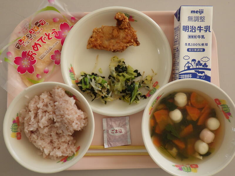 先週は、6年生のリクエスト給食でした。今日(3/16)の給食は、「お祝い献立」です。