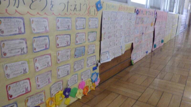 生活委員会が、「ありがとうプロジェクト」を企画しました。児童が書いた感謝のメッセージが職員室廊下に掲示してあります。