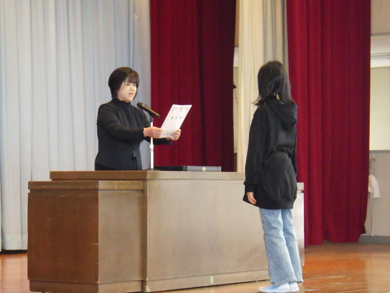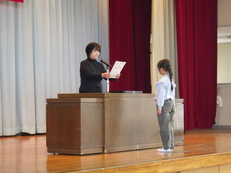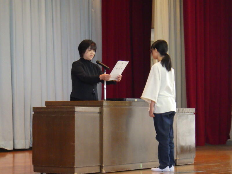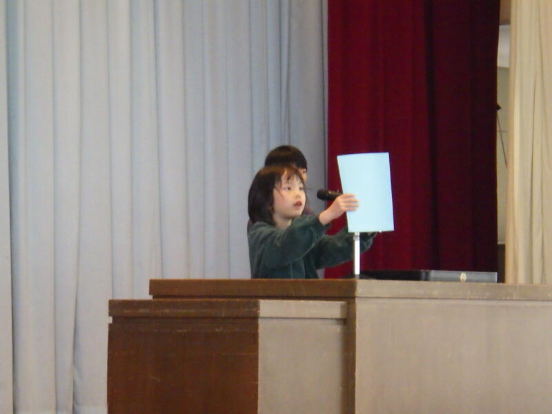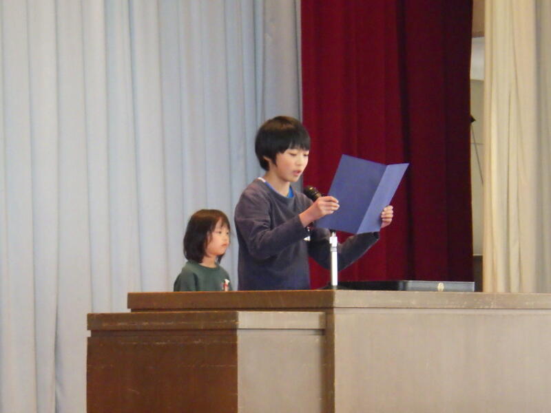 児童代表の作文発表は、1年間の頑張りが分かるすばらしい内容でした。はっきりと読み、堂々とした態度でした。