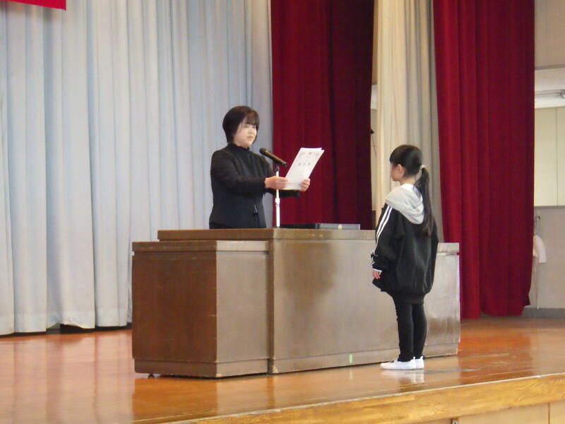 修了式では、各学年の代表児童が修了証を受け取りました。