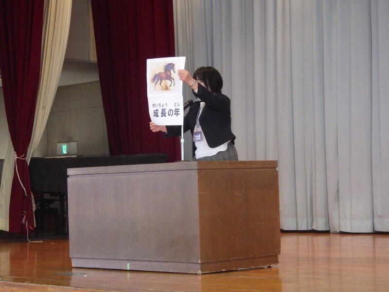 今年は午年。馬は大地を力強く駆け抜け、ぐんぐん前に進んでいく動物のため、午年は「物事が大きく前に進む年」「成長の年」と言われています。校長から「目標をもって、さらに成長できるようみんなで頑張っていこう。」という話がありました。