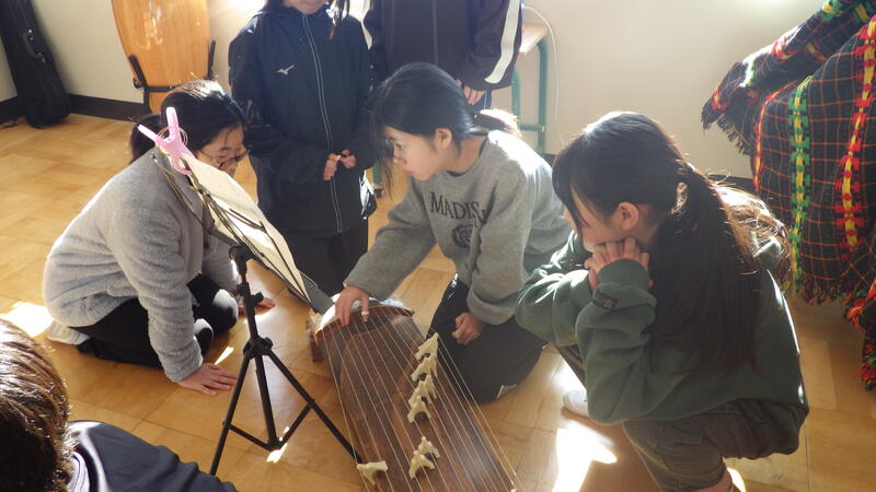 今回の授業では、琴の体験を実施しました。「楽しみにしていたよ!」と目を輝かせて音楽室に入ってきた児童もいました。