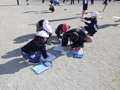 今日から運動委員会の企画で,「なわとびがんばろう月間」がスタートしました。初日の今日は,1・3・6年生が「なわとびBINGO」にチャレンジしました。業間に体育ノートを持ち,1・3年生は6年生に回数を数えてもらったり,跳び方のこつを教えてもらったりしながら,BINGOカードの種目にチャレンジしていました。
