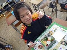 給食の時間に教室を訪れると、嬉しそうにお弁当の中身や、使った食材、自分で作った料理などたくさん教えてくれました。