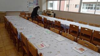 給食の様子も紹介します。放送前の給食の様子です。毎日の給食楽しみにしています。