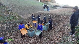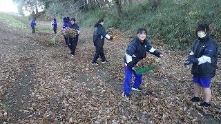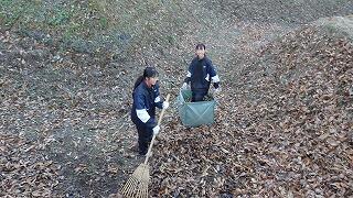 12月4日(木)の放課後、女子ソフトテニス部員と女子バレーボール部員が飛山城史跡公園の落ち葉掃きボランティア活動を行いました。本校では、目指す学校像に「地域とともにある学校」を掲げ、地域貢献ボランティア活動にも力を入れています。
