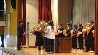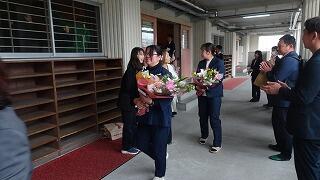 生徒代表の感謝の言葉 先生方、ありがとうございました。花束贈呈。