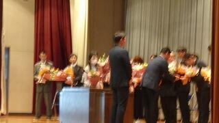 校長より先生方の紹介。清原中に数々の功績を残されました。
