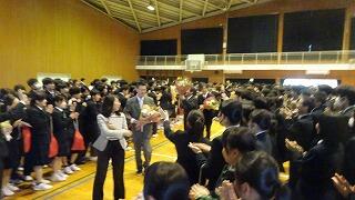 3月10日(火)、卒業生は1・2年生に歓送され、清々しく学び舎を巣立っていきました。あいにくの天候のため校舎内での送迎となりました。