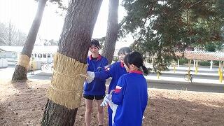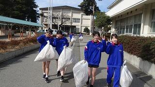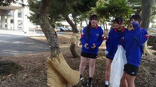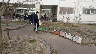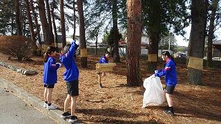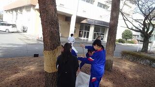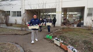 3月1日(日)、地域協議会、PTAボランティア33名、生徒のボランティア22名が参加し、地域協議会主催の松のこも外し,花の苗植えが行われました。今回のボランティアには、女子バドミントン部の生徒が協力してくれました。