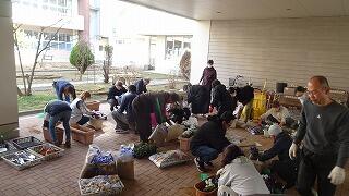 プランターへ花植え