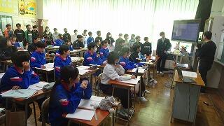 部活動担当の先生から、中学校の部活動について説明。中学校訪問担当の先生より、全体説明。