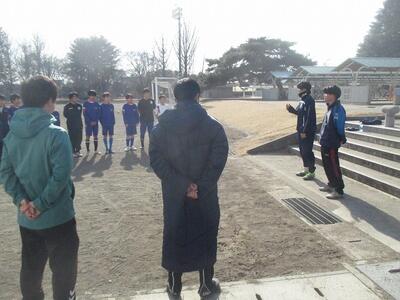 1月17日(土),清原中・泉が丘中サッカー部に作新大学サッカー部の選手が来て,指導してくれました。短い時間でしたが,サッカーに必要な足の運び,仲間との声かけなど,厳しくも明るく,ポイントを教えてくれました。はっとする気付きがたくさんあり,充実した練習になりました。お二人のコーチ,お世話になりました。機会を設定してくださった市役所の皆様,ありがとうございました。