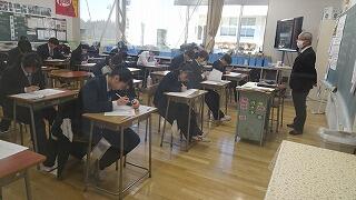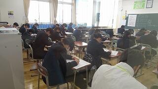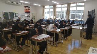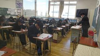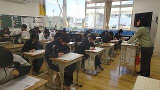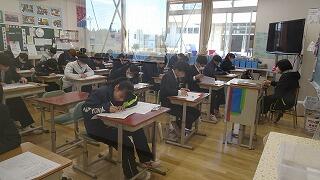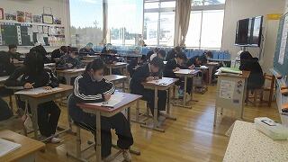 12月16日(火)、3年生が2学期期末テストを実施しました。自分の目標実現に向け、どのクラスも真剣な顔つきでテストに臨んでいました。