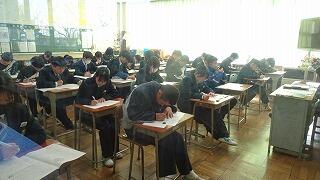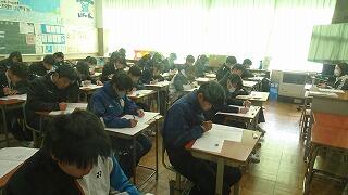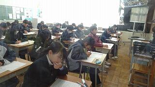 1月8日(木)、1・2年生が実力テスト②を実施しました。冬休み明け、初の登校でしたが、朝の会そして全校テレビ集会後、学級活動でこれからの過ごし方、新たな目標に向けての努力等について、担任の先生の話を落ち着いて聞いていました。