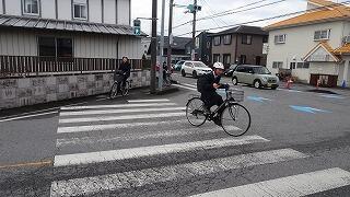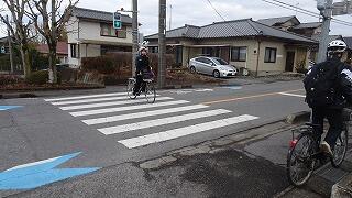 *自転車通学者は、一時停止、左側一列走行等をしっかり守ることで危険度も下がります。徒歩通学者も、今まで以上に車の動きに注意、右側通行を守り、安全に登校していました。また、LRTでの登校の生徒は、新しくできた横断歩道をきちんと渡っていました。
