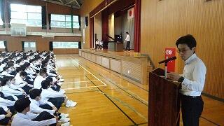 *生徒会長からは、いじめは絶対ダメだということ、いじめに立ち向かう勇気もつこと、清原中いじめ根絶宣言を全校生徒に熱く呼びかけました。
