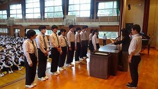 10月16日(木)、令和7年度第2学期始業式の前に後期生徒会役員任命式が行われました。