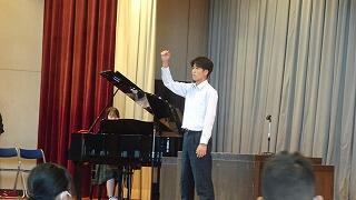 国家斉唱と校歌斉唱。しっかり歌いました。