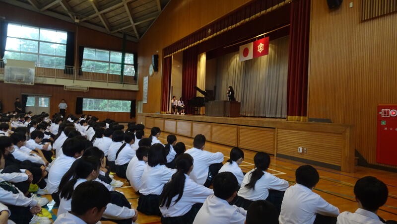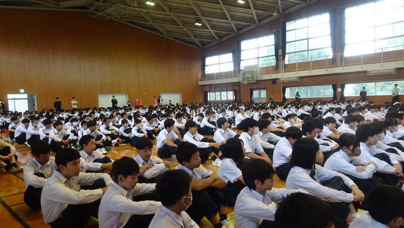10月10日(金)は1学期終業式です。全校生約860名が体育館で一堂に会しての式となりました。