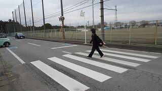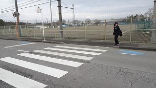 北門付近に新しく横断歩道ができ4か月がたちました。徒歩通学者は、今まで以上に車の動きに注意、右側通行を守り、安全に登校していました。