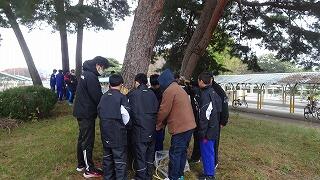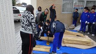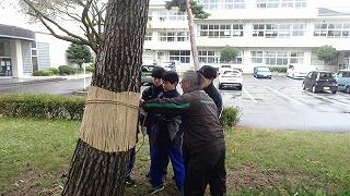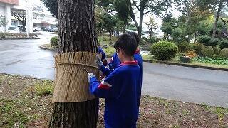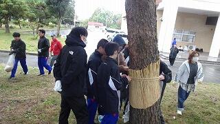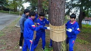 11月9日(日)地域協議会主催で、男子バレーボール・サッカー部の皆さんの協力の下、毎年恒例の晩秋の風物詩「松のこも巻き」が実施されました。