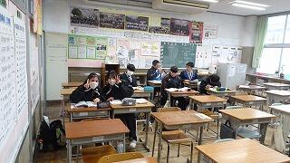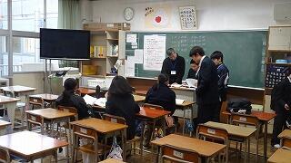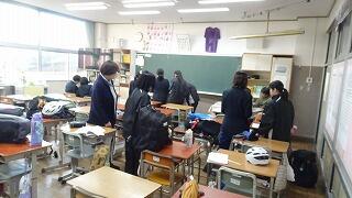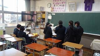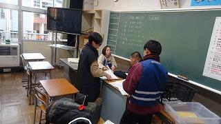 質問のある生徒が各教科に分かれて、先生方へ分からない問題などに取り組んでいました。先生方も分かるまで丁寧に教えていました。明日の学年末の期末テスト、最後まで粘り強く取り組んでください。