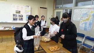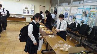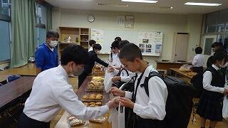 10月24日(金)に,NPO法人なないろの皆様の協力を得て,特別活動室でおやつカフェを行いました。今回は、ロスが少なかったため、1年生の3クラスでの実施となりました。地域企業のご支援の下,食品ロスについて考える機会をいただきました。配付に協力してくれた生徒からも「食品ロスについて考えながら楽しい活動ができました。」「このようなことは、初めての体験でしたが、いい経験ができました。」といった感想を述べていました。協力していただいた皆様、大変お世話になりました。