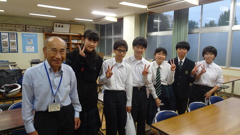 なないろの方と配付に協力してくれた生徒との集合写真。ご協力ありがとうございました。