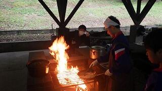 10月22日(水)の冒険活動教室3日目の様子をお伝えします。昨日と入れ替えて、女子はテント泊、男子はロッジ泊。ゆっくり、眠れたでしょうか。昨日より、寒さが増しましたが、元気に活動を開始しました。3日目も、午前中は、クラスごとに登山・野外炊飯・選択活動に分かれての活動です。